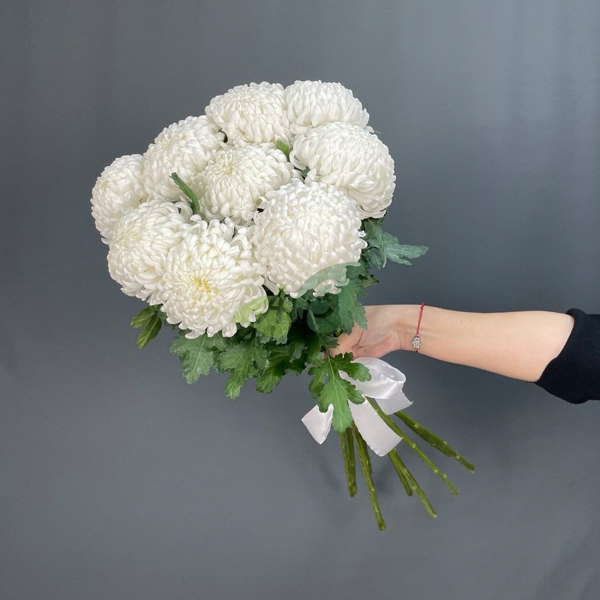 Состав и характеристики букета хризантем "Анастасия белая":