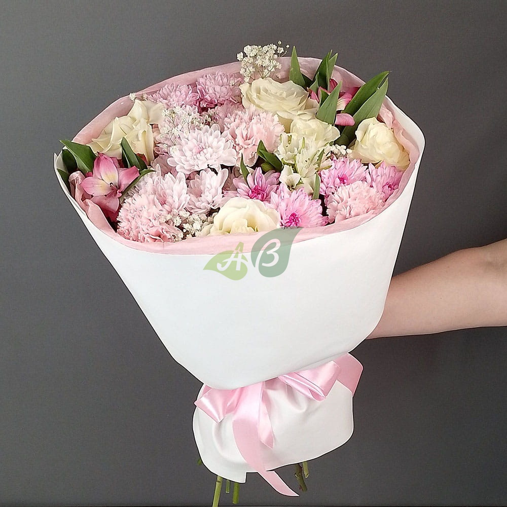 • Альстромерия - 3 штуки, цвет - белый, розовый, длина стебля - 60 см;